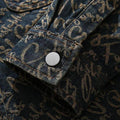 This jacket is made from premium denim, known for its durability and softness. The delicate script embroidery has been carefully crafted to give the jacket a luxurious touch, creating a perfect blend of art and fashion.