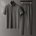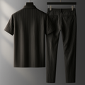The Solari Tailored Polo Set is crafted from a smooth, lightweight fabric with a subtle sheen and crisp vertical pinstripes. The structured polo pairs seamlessly with slim trousers and offers a clean, elegant look that’s easy to wear yet hard to overlook.